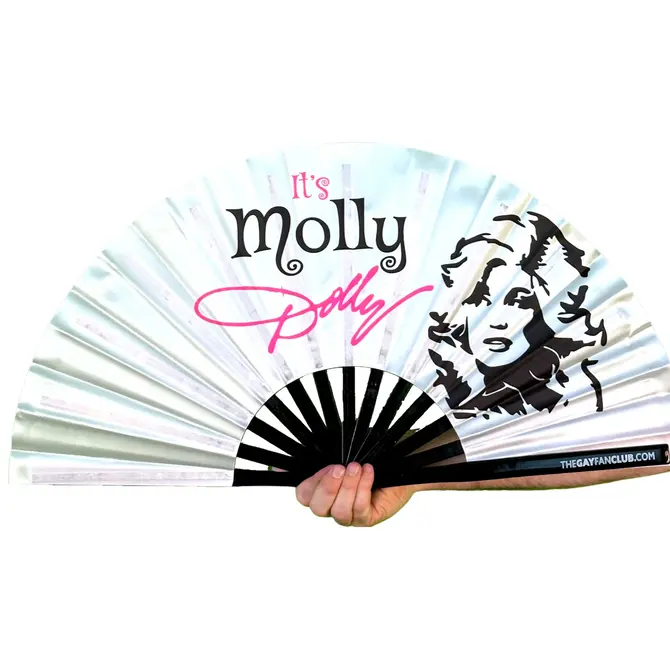 The white UV-reactive background, with Dolly Parton's likeness, allows the user to stay cool while partying with molly or her friends.