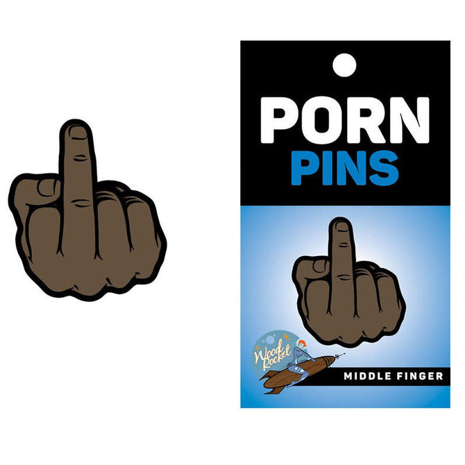 This funny soft brown color Middle Finger enamel lapel pin by Wood Rocket is the perfect novelty apparel accessory. It’s part of our Porn Pin collection and it is perfect to wear in public to tell people to fuck themselves without actually saying it.