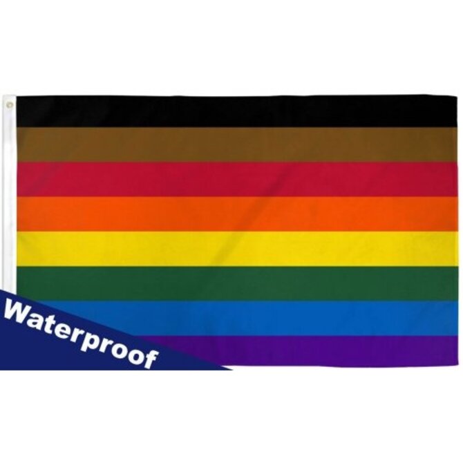 The Progressive Pride Flag was created in 2018 and is based on the Philadelphia Flag. The light blue, pink and white stripes represent trans and non-binary individuals, and the brown and black ones represent marginalized POC communities.