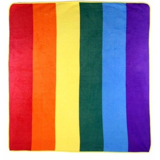 This 50x60in Rainbow Sheared Plush Blanket features beautiful bright colors. Machine washable convenience and self-binding edging ensure long-lasting resilience in your home, all while staying warm and cozy with pride!
